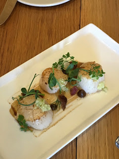 Moving through to the wonderfully open, light restaurant with more great views we settled down to test out their good looking menu. As there was a group of us, we were able to try out a range of starters from juicy scallops to the hearty terrine and the healthy deep green pea soup. My favourite was the watermelon with goat cheese and pistachio for its fresh, clean taste of the melon against the tart goat cheese.