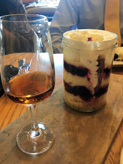 Was there some space for dessert? Of course, there was!  Luckily as we were a small group, we could, again, taste a range of options and here they are. My favourite by far was their unique take on a sherry trifle. The multilayered trifle arrives in a jar with an accompanying glass of sherry.  Using the long spoon you make a space down the side of the jar and ‘just add sherry’. It was very creamy and luxurious and got top marks for taste and presentation.